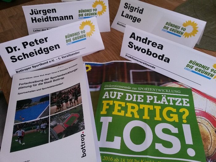 Am 18.Mai 2016 folgten Fachleute der Einladung zur Diskussion um den Bericht zur Bottroper Sportentwicklung. Als Gäste konnten die GRÜNEN Jürgen Heidtmann als Leiter des Sport- und Bäderbetriebes und Dr. Peter Scheidgen als 1. Vorsitzende des Bottroper Sport Bundes gewinnen. Dazu kamen Vertreter*innen gerade der Kirchhellner Sportvereine auch aus Feldhausen.