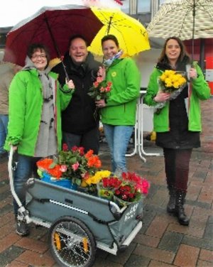 Die Grüne Ratsfraktion verteilt zum Weltfrauentag Fairtrade-Rosen