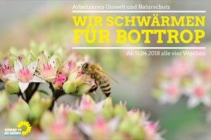 Der Arbeitskreis der GRÜNEN unter dem Titel „Wir schwärmen für Bottrop“ stellt sich neu auf. Er sammelt Ideen, Ansätze und Anträge aus den Themenfeldern Umwelt und Naturschutz, sucht strategische Partner, lädt Referent*innen zu ausgesuchten Fragen ein und besucht sehenswerte beispielhafte Orte - steht er unter der Federführung von Joachim Gutsche, Vorstandssprecher und aktiver Imker, der nun mehr als Verbindungsglied zwischen der Öffentlichkeit und Initiativen und der Politik fungieren will.