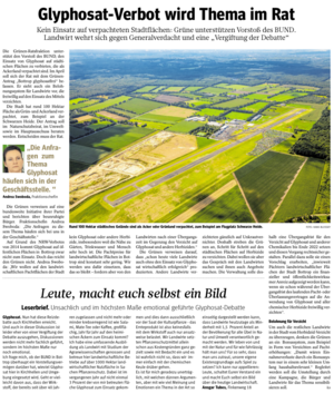 Bundesweit haben darum die GRÜNEN eine Initiative gegen Glyphosat ergriffen, die bereits in einzelnen Kommunen aufgrund GRÜNER Anträge beschlossen wurden. Neben der Dortmunder Ratsfraktion und aktuell der Bochumer Ratsfraktion in NRW auch Ratsfraktionen in anderen Bundesländern wie in Sachsen.