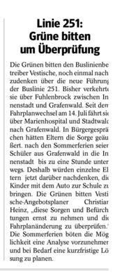 Zahlreiche Beschwerden erreichen die Grünen in Bottrop. Im Fokus der Bedenken und Sorgen ist gerade bei den Eltern schulpflichtiger Kinder die Linei 251 von Kirchhellen nach Bottrop.
