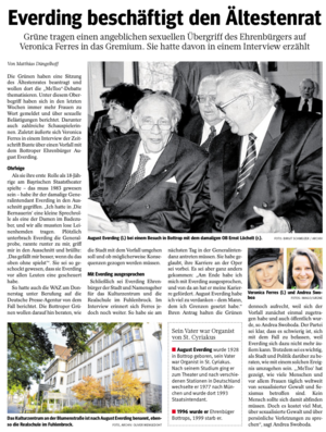 Nach intensiver Bertung hat sich die GRÜNE Fraktion verständigt, dass es für die Auseinandersetzung mit den aktuell formulierten Vorwürfen von der Schauspielerin Veronica Ferres gegen August Everding anlässlich der #MeToo-Debatte hilfreicher ist, wenn zur nächsten anberaumten Sitzung des Ältestenrates ganz bewusst nach der Sommerpause noch zeit vergeht.